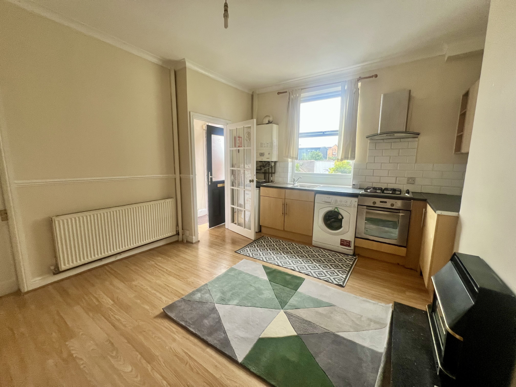 The property has a large kitchen/living area, a door leading to the basement which is useable for storage. The first floor has a large double bedroom with built in cupboard, the bathroom is modern with shower over bath and there is a further double bedroom on the top floor.